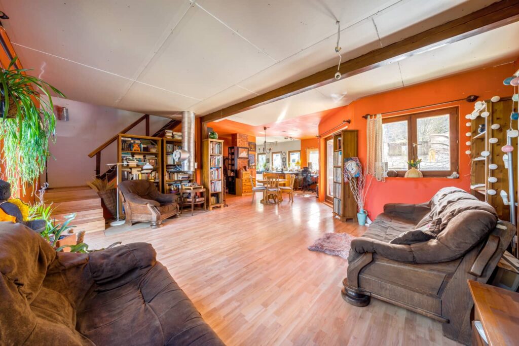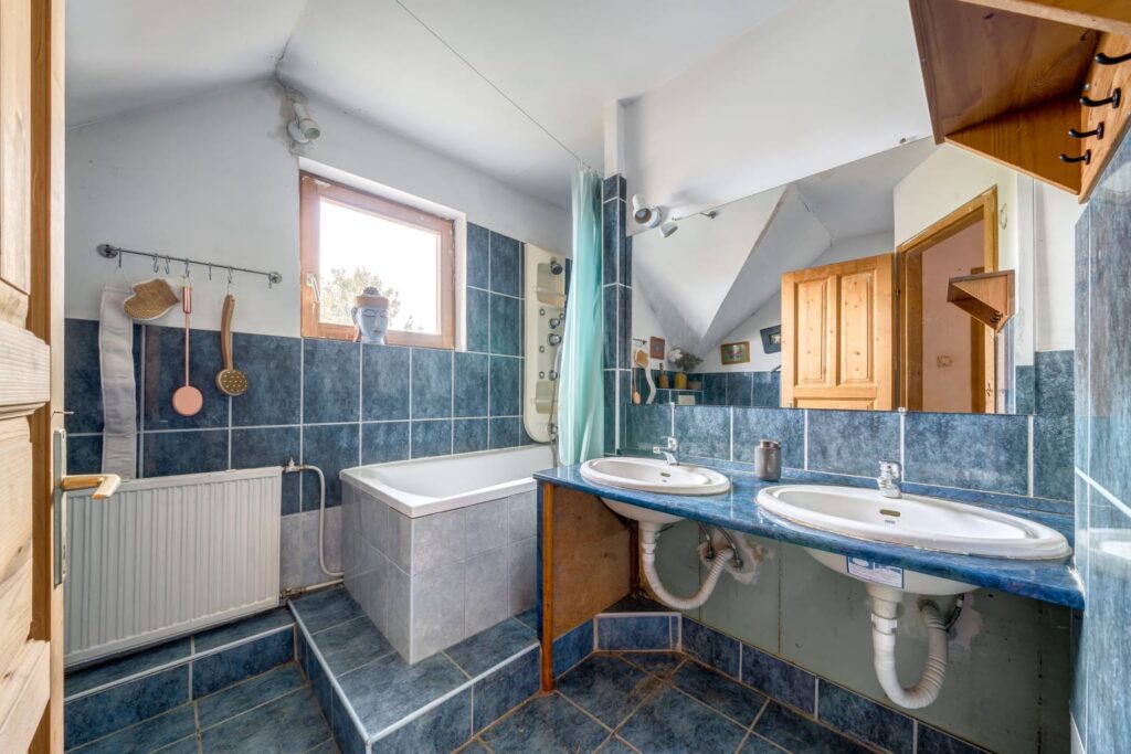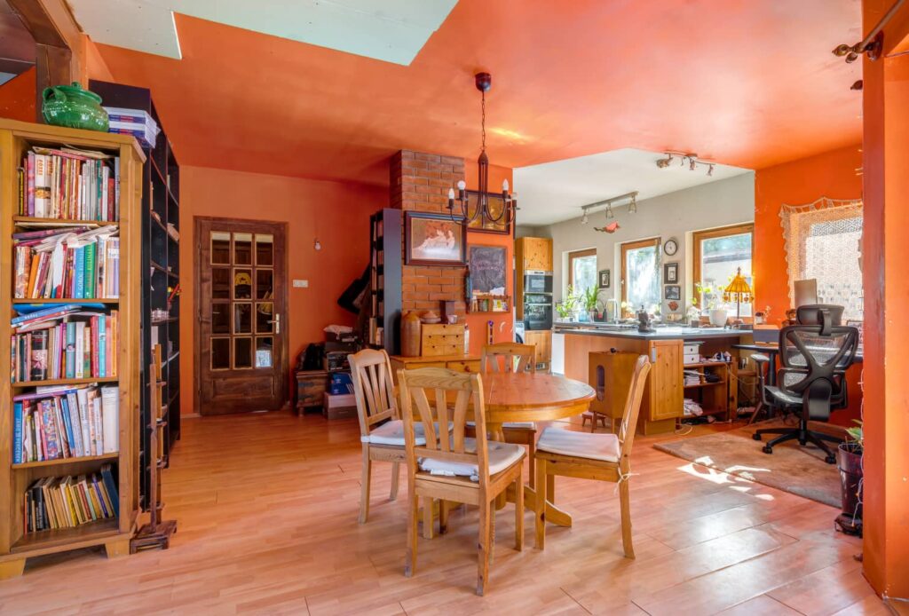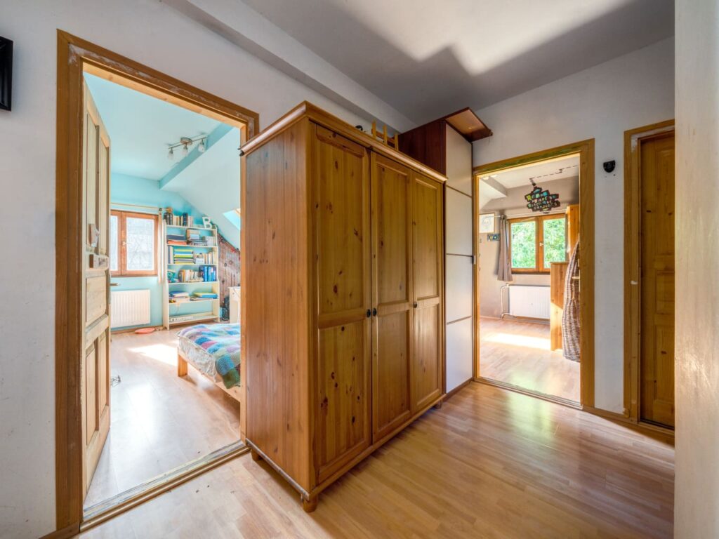 A ház felújítandó, ám kivételes adottságai révén hatalmas lehetőségeket rejt. A földszinten egy tágas, amerikai konyhás nappali várja, amely közvetlen teraszkapcsolattal rendelkezik – itt kávézhat reggelente, miközben élvezi a természet közelségét. Ezen a szinten kapott helyet egy dolgozószoba, egy fürdőszoba és egy kamra is, hogy a mindennapok kényelmesek legyenek.