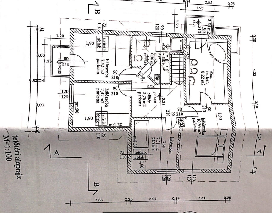 A tetőtérben négy hálószoba és egy fürdőszoba biztosítja a család minden tagjának a privát életteret. A ház fűtéséről korszerű kondenzációs gázkazán gondoskodik, amely a pincében kapott helyet.